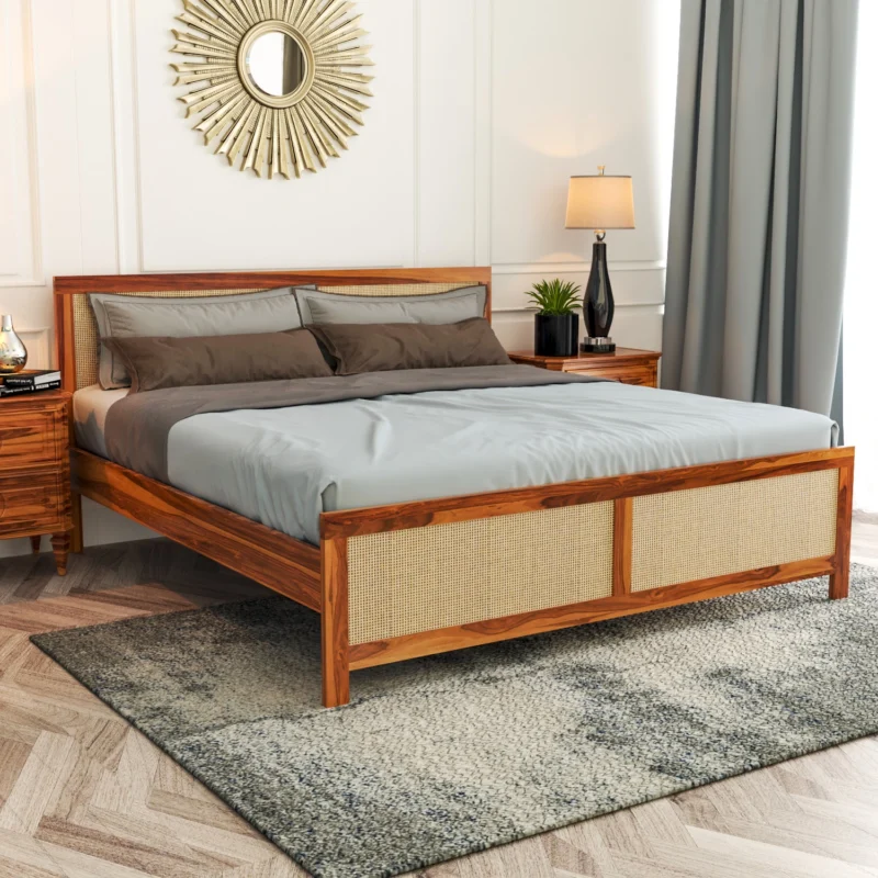 Vedica 1 Seater Sheesham Wood Sofa With Cane and Brass Detailing
